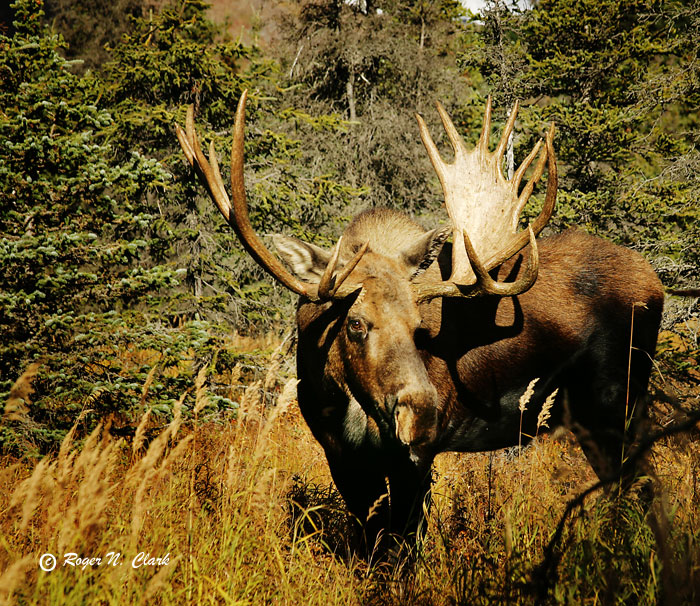 No, seriously. Rutting season is well identified by the smell that lingers in the air. A bull will dig (with his hoof) a rut (ahh there's where we get rutting from) about 2 feet long and 2-3 inches wide. Bare with me now - the male moose will piss into this rut, and splash it all over his head and newly shed antlers. The ensuing, INCREDIBLY strong scent attracts cows - female moose - from all over, and mating season begins.